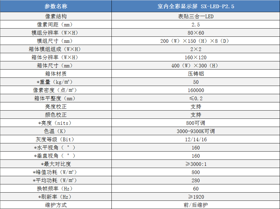 P2.5室內(nèi)小間距高清全彩LED顯示屏技術(shù)參數(shù):