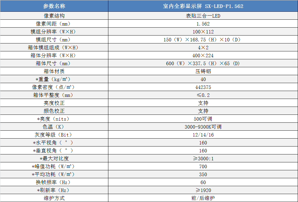 P1.562室內(nèi)小間距高清全彩LED顯示屏技術(shù)參數(shù):